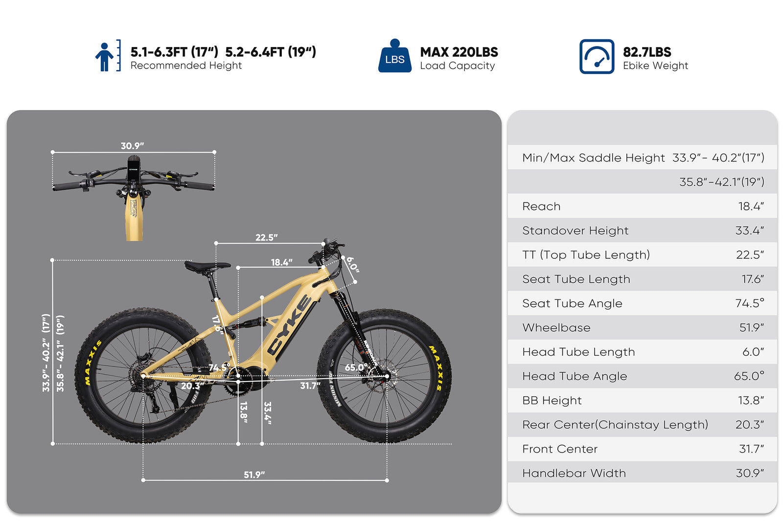 | Tire | MAXXIS M325, 27.5×3″, snow tire | MAXXIS, 29×3″, MTB tire | MAXXIS, 26×4.8″, snow tire |